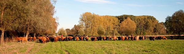 Mit einem Anfangsbestand von acht Tieren – sieben Kühe und ein Bulle – hat sich die Herde inzwischen prächtig entwickelt und stammt bis auf wenige Ammenkühe eines Bekannten von den Urmüttern ab. Heute zählen wir über 80 Tiere, wobei ca. 40 Jungtiere dazu gehören, die das vierte Lebensjahr noch nicht erreicht haben. Um diese Größe ohne Zuchtschwierigkeiten zu erzielen, war es wichtig die Deckbullen regelmäßig auszutauschen. Mit Erfolg wie man sieht.