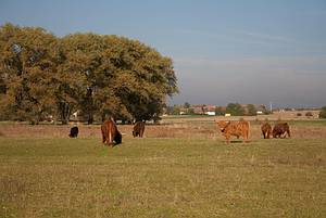 Mit unserem Beweidungskonzept verbinden wir nachhaltige Landschaftspflege mit den genügsamen Ansprüchen der Rinder und dem Erhalt der standorttypischen Vegetation und Fauna. Durch die geringe Bodenverdichtung der weidenden Tiere und deren anspruchslosen Futterverwertung – es werden auch Rohrkolben, Disteln, Brennnesseln, Gehölze und Gras gefressen (auch am liebsten in dieser Reihenfolge) - sind die Schottischen Hochlandrinder bestens geeignet die Grünflächen extensiv zu beweiden. Ohne Zufütterung sinkt zudem der Nährstoffgehalt in den Böden, was insbesondere seltenen Pflanzenarten Vorteile bietet. Lediglich in der kalten Jahreszeit wird Heu und Stroh im Winterquartier zugefüttert.