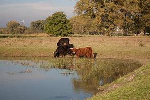 Die Grünflächen, die wir extensiv beweiden sind in aller Regel für maschinelle Bewirtschaftungen zu klein, durch Überflutungen zu naß oder wären durch die Bearbeitung per Hand sehr kostenintensiv. Wir schaffen Kleinstrukturen, die durch Mahd nicht zu erreichen sind.