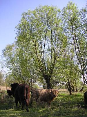 Seit mehr als 10 Jahren beweiden unsere Schottischen Hochlandrinder mitten in Rheinhessen entlang der Selz verschiedene Weideflächen. Unser Motto dabei: Pflege durch Nutzung. Die Mädels weiden hier zwischen Nieder-Olm und Hahnheim, die Bullen um Friesenheim und Undenheim.