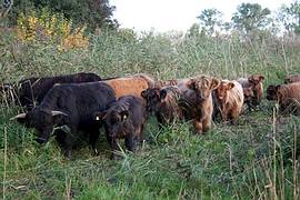 Auch wenn es schwer fällt, da die Bullen nicht alle bei der Herde bleiben können (Inzucht und Unruhe), müssen die "älteren" verkauft werden. Aufgrund ihrer Lebensumstände eignen sie sich gut als Zuchtbullen oder zur Pflege von Flächen, da sie auch mit kargem Futter und der Freilandhaltung klar kommen.