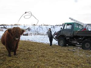 Wenn Sie sich also trauen, Ihr Quarterhorse zwar Cowsense aber sonst nix zu tun hat oder Ihr Kuhhund neben den Nachbarskindern auch mal richtige Rinder treiben will oder Ihr Kegelverein einmal wie echte Cowboys and Cowgirls auftreten will, dann reden Sie mit uns. Sollten Sie einmal ohne Brett über einen gefrohrenen Acker surfen wollen, auch da werden Sie geholfen.
