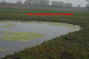 Im Gewässer ist schön die Algenblüte durch Nitrateintrag zu erkennen. Die Fläche wird "offiziell" nicht gedüngt.