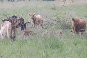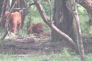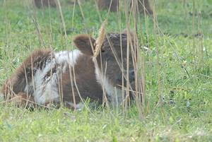 auf den Bildern auch ein Neugeborenes was nach den Geburtsstrapazen stundenlang im Gras liegt. Die einzige Bewegung die ab und zu zu beobachten ist, das Kuhradar welches sensibel (-: auf Geräusche in der Umgebung achtet und besonders auf anschleichende Zweibeiner mit Piercingzange lauscht und innerhalb weniger Bruchteile einer Sekunde von Schlaf auf 40km/h beschleunigt.